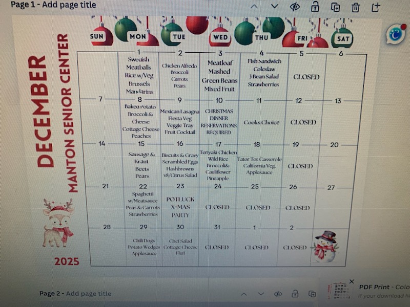 Meals on Wheels Monthly Menu | Home Delivered Meals